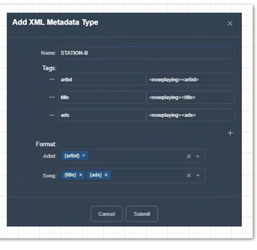 Send your artist/tile and ad-insertion metadata. We support Plain text, Serial (via Audiovault), and a customizable XML parser. Plain text and XML can be received via TCP or UDP.