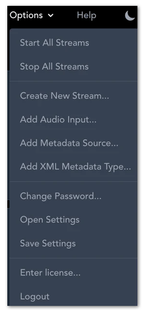 Here you can add as many audio source inputs as you require depending on your purchased license. The default license includes one audio source input.Add Metadata Source